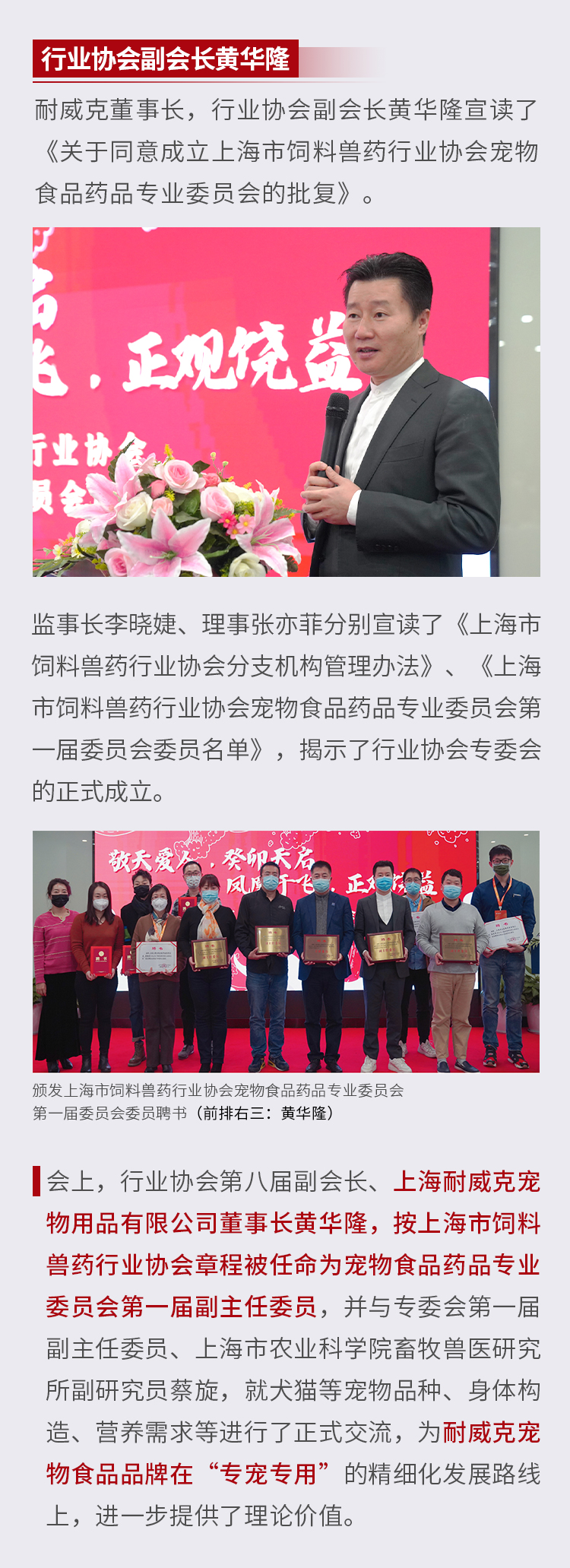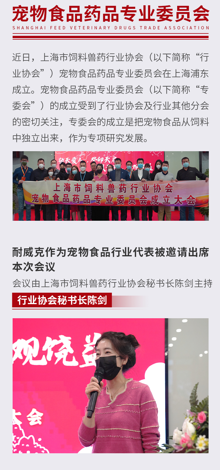 您當前的位置:首頁 > 關(guān)于耐威克 > 企業(yè)新聞 > 上海市飼料獸藥行業(yè)協(xié)會寵物食品藥品專業(yè)委員會成立!耐威克獲首屆委員聘書