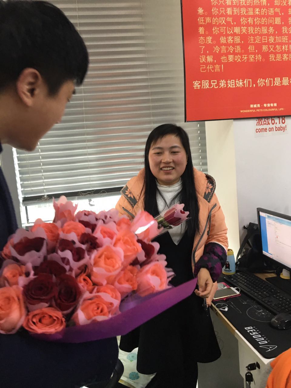 公司給每個姑娘都準備了玫瑰花,這不,收到玫瑰,幸福像花兒一樣!