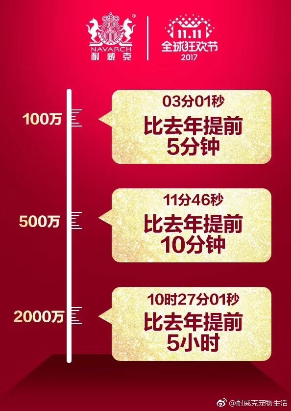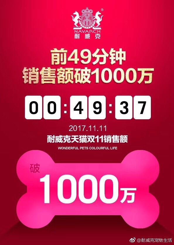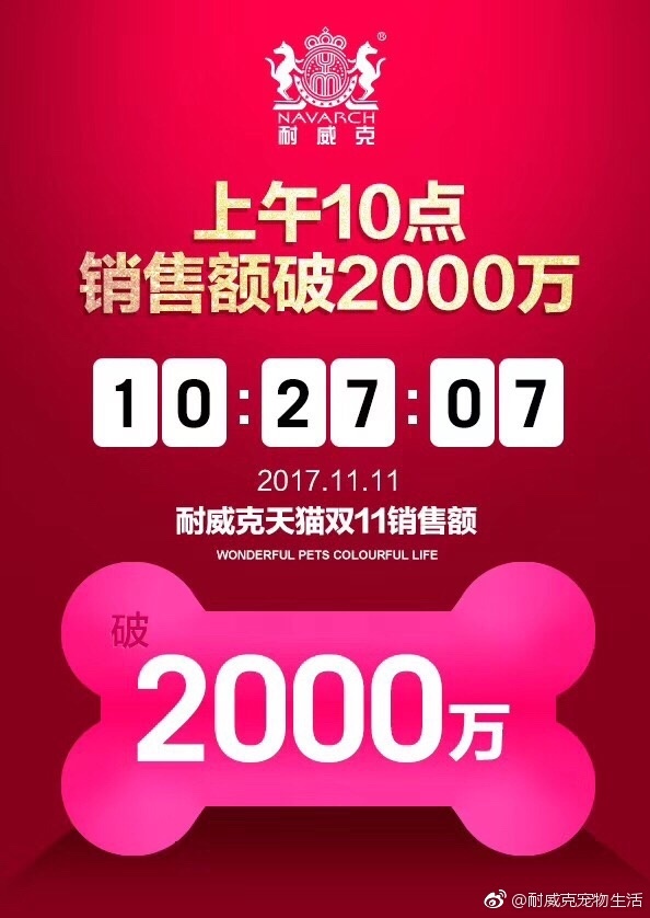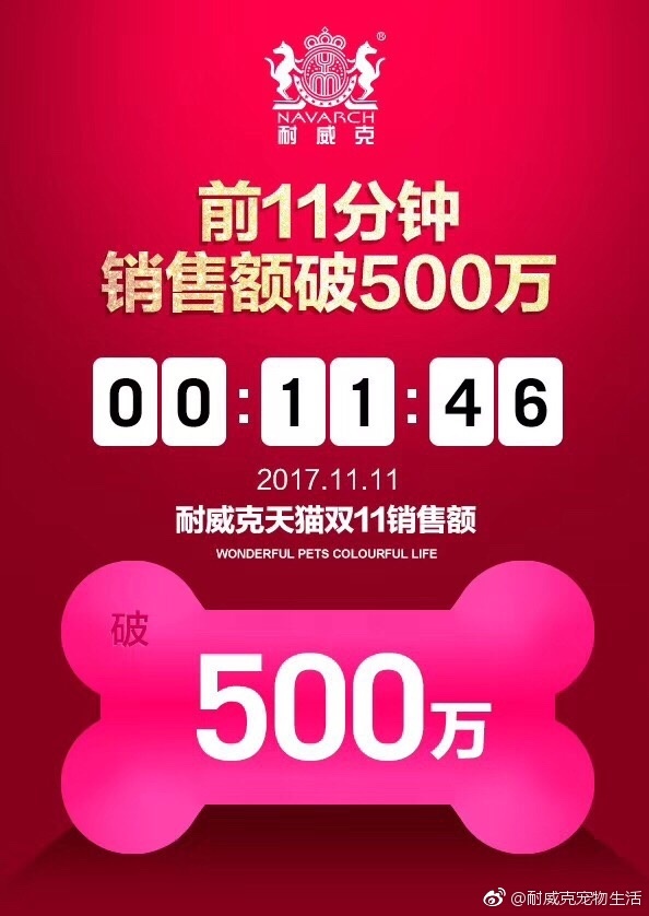 雙十一完美收官 耐威克再創佳績 天貓犬主糧類目 5年蟬聯冠軍 感謝感謝感謝! 明年再見!